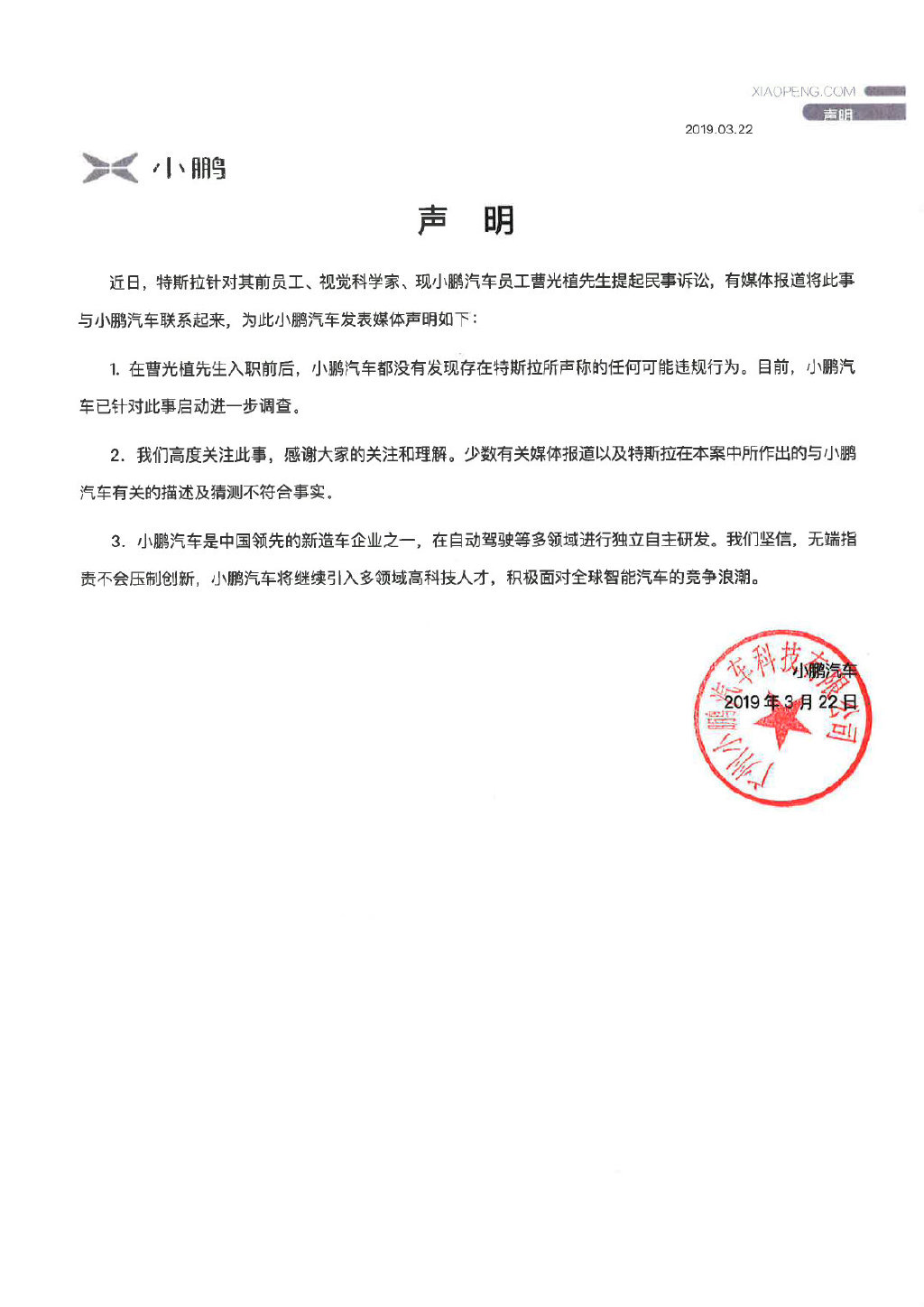 在數周前,我就聽說Elon之前在Tesla內部數次提及小鵬汽車,并期望相關團隊關注,如果是這樣的方式來表達,我相當不解,用一個懷疑的,民事訴訟,通過打擊工程師的方式來進行?