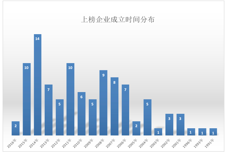 當然,“夏天”也是孕育生命的好時節。本次上榜的企業有24家誕生在2014年和2015年的“雙創”大潮,比如商湯科技、松鼠AI智適應教育、極鏈科技等多家人工智能獨角獸就誕生在那個資本涌動的2014年。