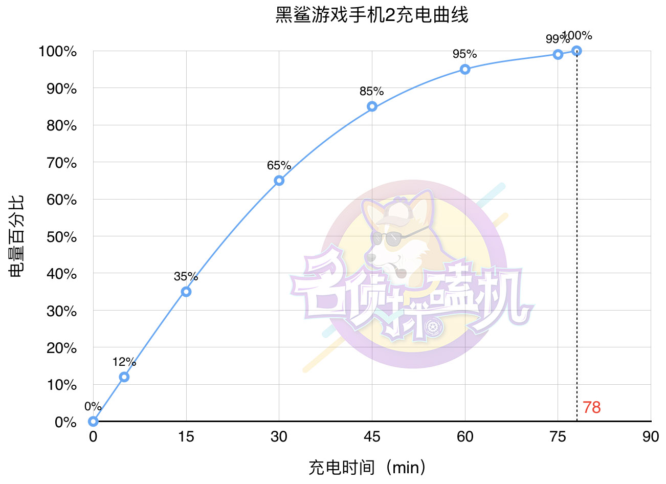 而在充電方面,黑鯊手機2標配了27W有線快充,由于手機為電池部件增加了液冷散熱,所以在邊玩邊充時,可以有效降低電池的溫升。使用原裝充電器為手機充電,實測半小時充電65%,0-100%充電僅需要78分鐘。