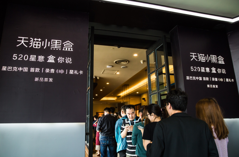 (星巴克首款“會(huì)說(shuō)話”的星禮卡天貓小黑盒首發(fā)。)