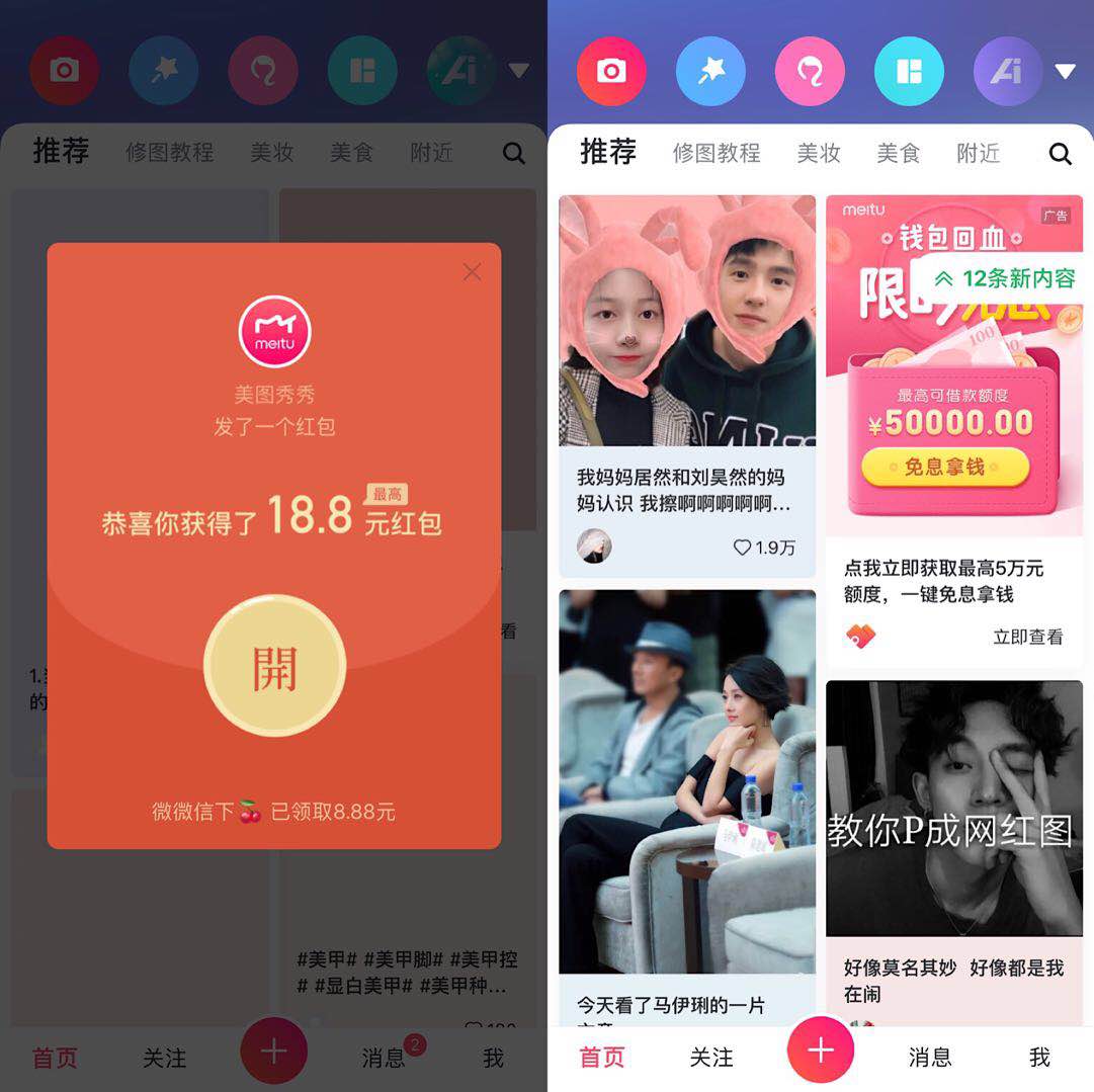 然而美圖秀秀1.1292億月活躍用戶中,社交用戶僅有51%(還包括因拉新紅包注冊(cè)的用戶),近半數(shù)用戶仍然將美圖秀秀視為工具軟件。倘若不能通過社交粘性取得穩(wěn)定的用戶在線時(shí)長,美圖的“廣告驅(qū)動(dòng)”恐將陷入生于拉新、死于留存的停滯。