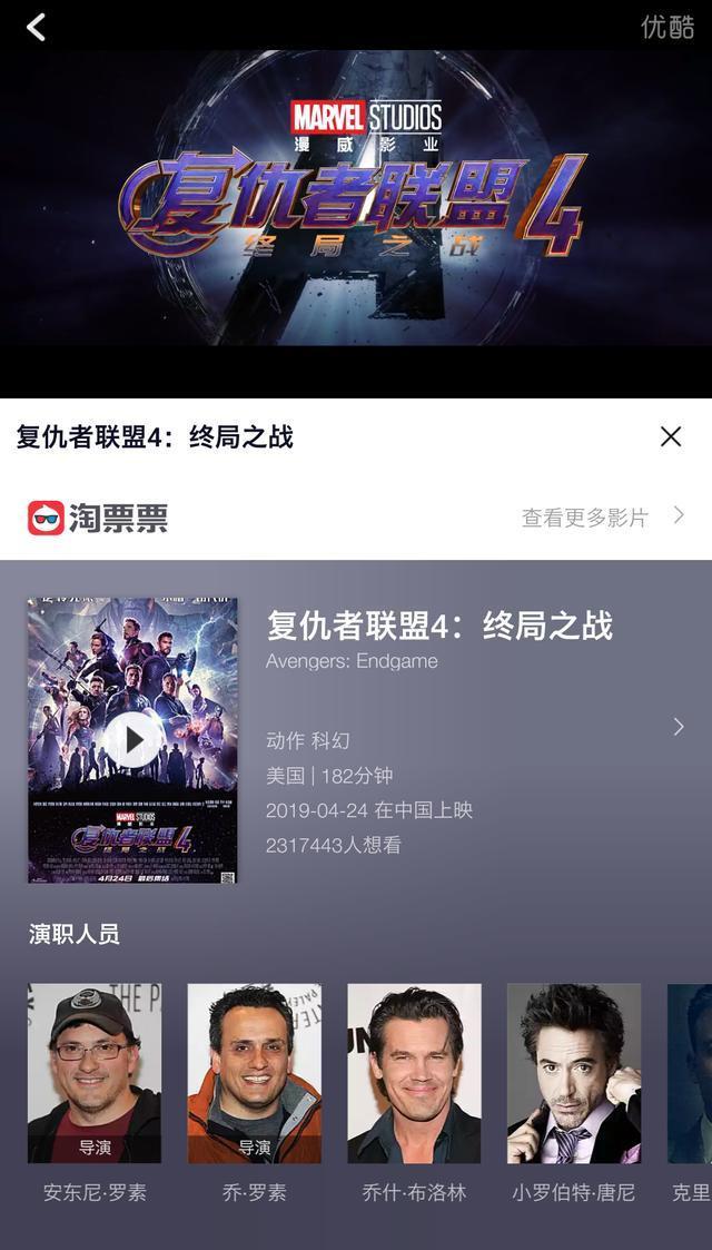 到了淘票票專為《復聯4》打造的“漫威社區”,宣發活動之外,整個社區的文化圈層色彩也日趨明顯。據了解,此次《復聯4》預售,優酷不僅集結了漫威此前的19部電影,還貼心地在優酷預告片下開啟了購票入口,方便影迷購票,淘票票x優酷雙端聯動,展現出強大的流量優勢。強大的流量勢能使得社區上線18小時想看漲18萬,影片上映一周想看超280萬,創下了最快增速的記錄。