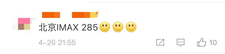 值得注意的是,以上只是平均票價,實際上根據(jù)不同的場次和影院硬件條件,各地都出現(xiàn)了百元以上的票價,該榜單公布后,網(wǎng)友紛紛在評論區(qū)曬自己的所在城市和票價,有網(wǎng)友就表示,自己看了場285元的IMAX版!更有網(wǎng)友表示“同事臨時有事,免費給我的”,無疑羨煞旁人。