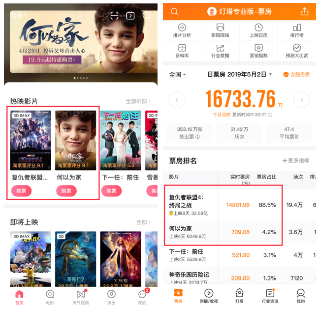 同時,另一部口碑與《復聯4》齊平的作品,是《何以為家》(迦百農)。該片獲得了奧斯卡最佳外語片提名,是這個五一檔除了超英題材外最值得關注的影片。該片在淘票票上同樣獲得了9.1分的高口碑,豆瓣評分也高達8.8分。在五一假期的第二天,《何以為家》票房突破6000萬元,反超《下一任:前任》成為票房僅次于《復聯4》的檔期熱門。