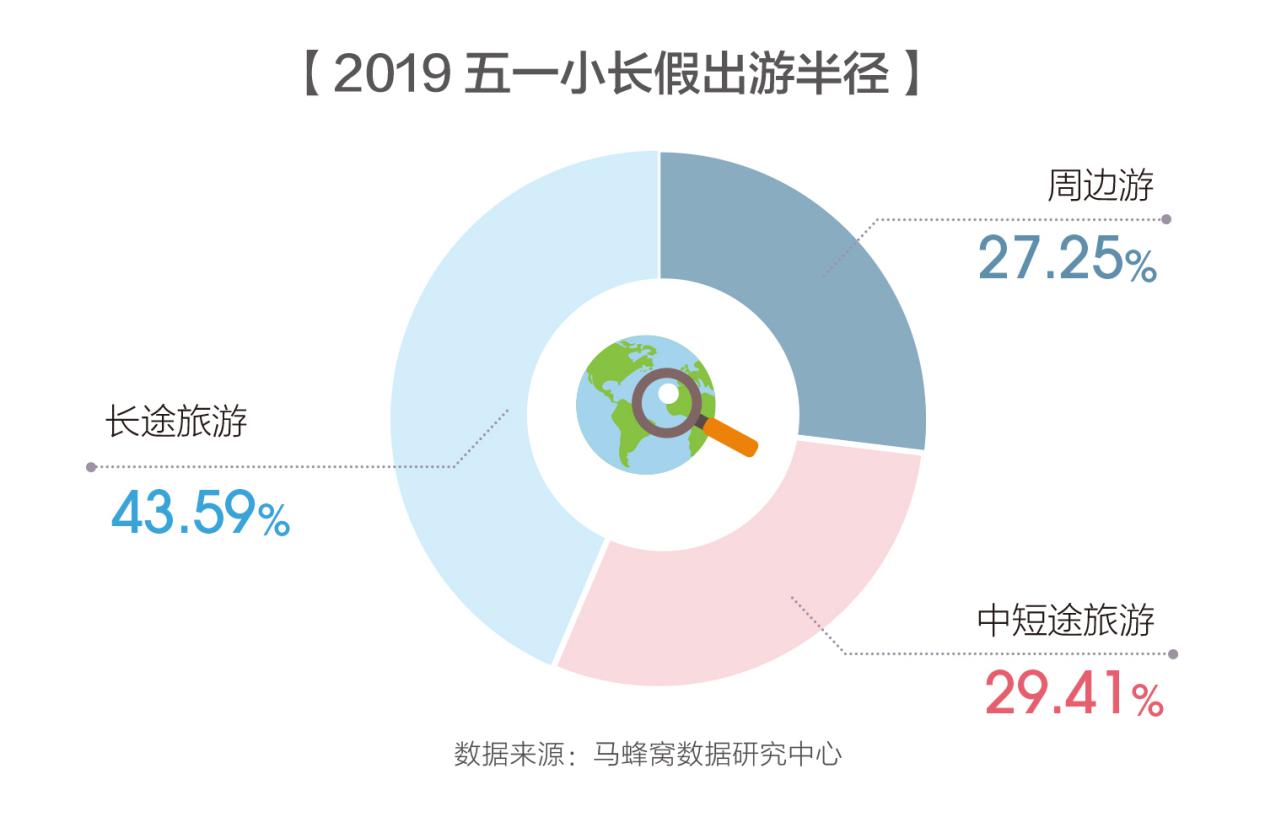 出游半徑方面,今年五一期間中短途和周邊游的游客比例出現明顯上升,其中,出游半徑在300公里以內的周邊游游客占比27.25%,同比去年上漲15.07%。出游半徑在300公里至1000公里的中短途旅游游客占比為29.41%,同比去年上漲19.12%。