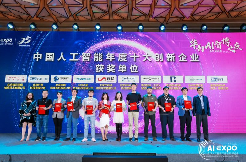 隨著人工智能技術的發展與產業變革,創新型企業越來越受到全社會的關注,這幾年國內應用場景不斷拓展,技術不斷更新迭代,涌現了一大批優秀的AI領域創新企業。大會首先頒發的是“中國人工智能年度十大創新企業”獎項。北京曠視科技有限公司、北京澎思智能科技有限公司、北京格靈深瞳信息技術有限公司、北京市商湯科技開發有限公司、北京中科寒武紀科技有限公司、零度智控(北京)智能科技有限公司、星邏智能科技(蘇州)有限公司、北京明略軟件系統有限公司、羅博特科智能科技股份有限公司、蘇州牧星智能科技有限公司,10家人工智能領域的創新企業在評審中脫穎而出,獲此殊榮。