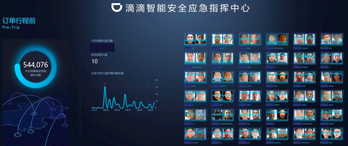 與此同時,滴滴首次對外展示了公司自主研發的可視化全流程安全管理系統。系統綜合運用多部門安全管理數據,以及警企合作對接數據,可分別針對行程前、行程中及行程后開展全程的安全監測。
