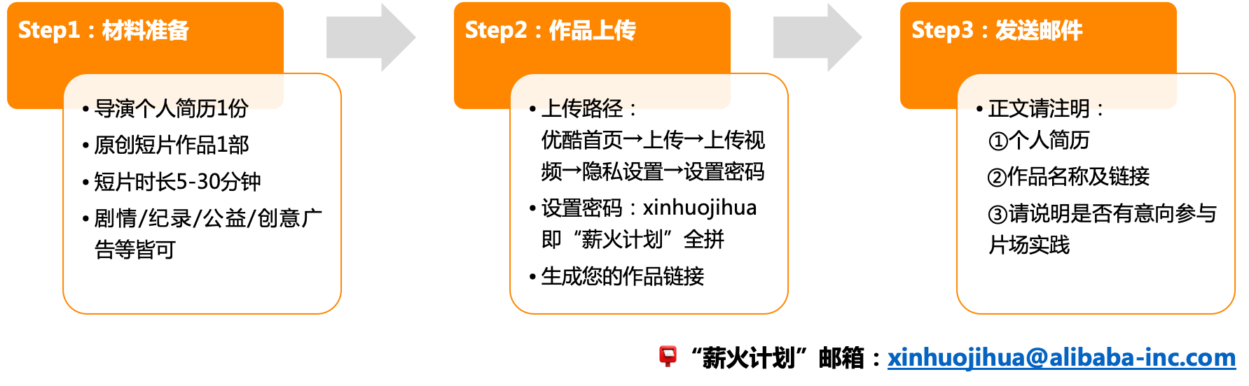 短片一直被視為新導演通往長片的梯級和證明自我能力的重要方式。在阿里文娛“薪火計劃”首批短片上線同時,阿里文娛宣布正式啟動“薪火計劃”首期青年電影人才招募。