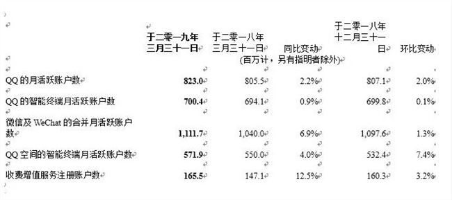 騰訊董事會主席兼首席執行官馬化騰表示:“于二零一九年第一季,我們各主要平臺保持良好的用戶活躍度,其中QQ及微信用戶上傳及分享的短視頻數量顯著增長。隨著我們在中國推出大受歡迎的新游戲如《完美世界手游》,同時《PUBG MOBILE》在國際市場持續增長,我們的游戲業務重現活力。雖然支付、其他金融科技服務及云業務目前仍處在早期發展階段,但現已帶來可觀收入;因此,我們在金融科技及企業服務的新分部披露其業績,展示出我們在內部培育具有長遠增長潛力的業務所取得的成功。我們相信,公司正在為消費及產業互聯網領域的未來增長奠定堅實的基礎。”