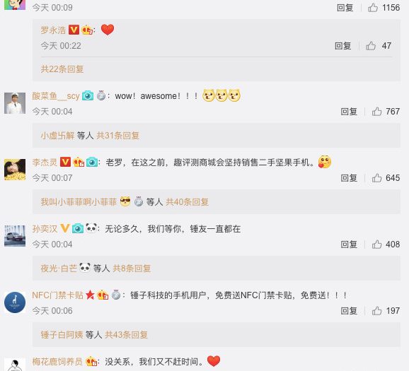 在羅永浩的微博下,不乏有粉絲對此表示支持。看評論時間,也多為深夜。或許對于粉絲來說,這句話,才符合羅永浩的形象。