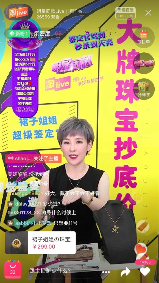 凌晨四點,淘寶直播淘Live的官方直播間依舊熱鬧非凡。主播在熱情地和粉絲互動、介紹商品、發放直播間福利。這檔《明星同款LIVE》的珠寶直播節目,趕在天貓618前在淘Live的通宵檔開播。