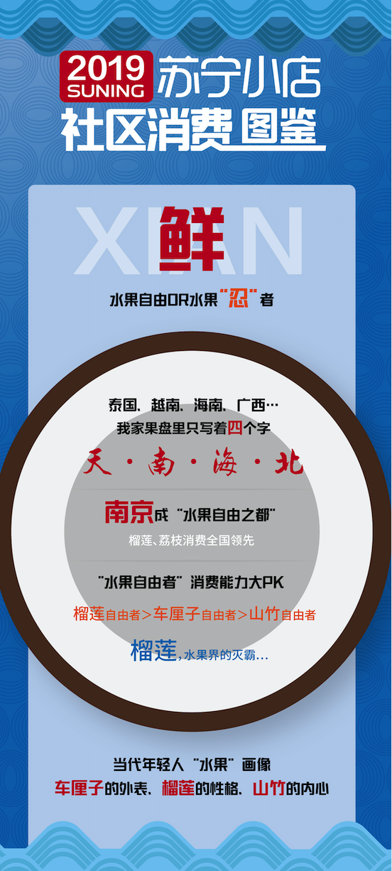 正值618,線下門店超5000家、覆蓋全國超40000個社區的蘇寧小店,基于其全國消費大數據,首次發布2019社區消費圖鑒。數據顯示,相較于70后對性價比的追求,90后更青睞服務品質;社區消費“鮮”字當頭,水果自由逐步升級;社區“李佳琦們”走紅,帶貨王成生力軍……