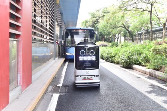 京東物流配送機器人在公交樞紐站設立的智能配送站進行貨品的接駁?