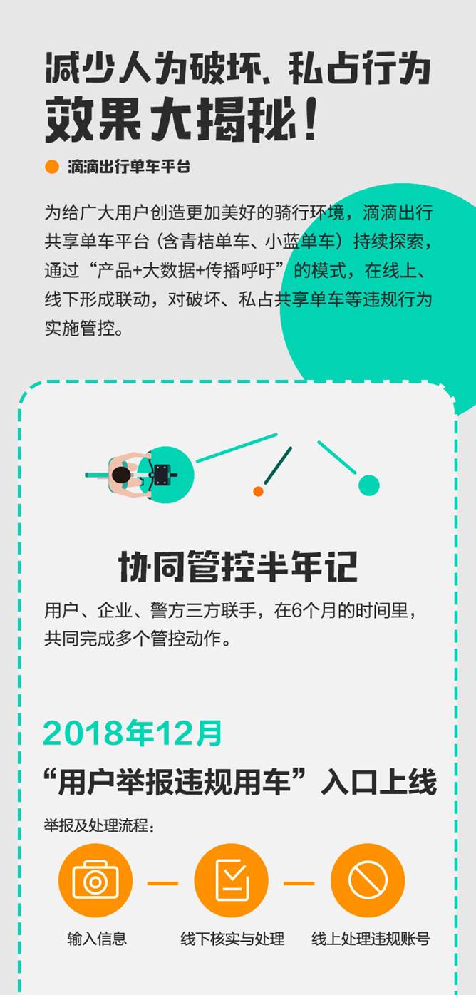 近日,滴滴出行共享單車平臺(含青桔單車、小藍單車)發布“破壞、私占行為協同管控半年記”。
