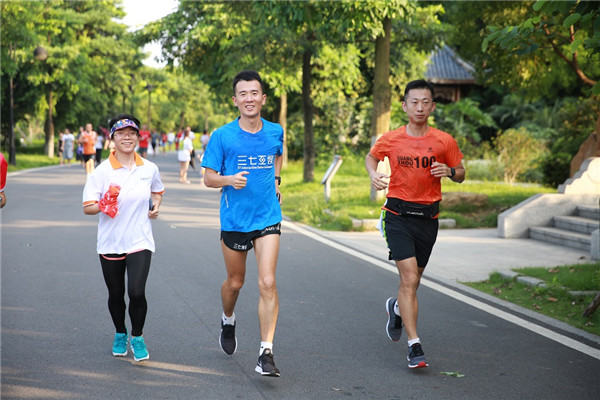 劉路峰帶領(lǐng)跑團在海珠湖進行5公里跑