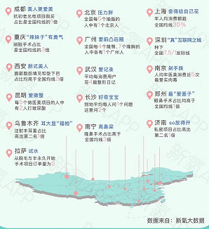 根據中國醫美消費地圖來看,一線城市更容易受壓力影響,出現壓力胖、脫發等現象,而新一線及二線城市,則更注重外貌所帶來的影響。