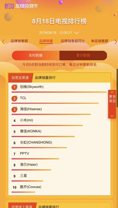 創維、海信和TCL仍然備受追捧,在品牌銷量、品牌銷售額、單品銷售額等多個榜單中均排名前列。值得一提的是,康佳和小米分別憑借著一款性價比電視成為榜單黑馬,沖進單品銷量和單品銷售額榜單的TOP10。
