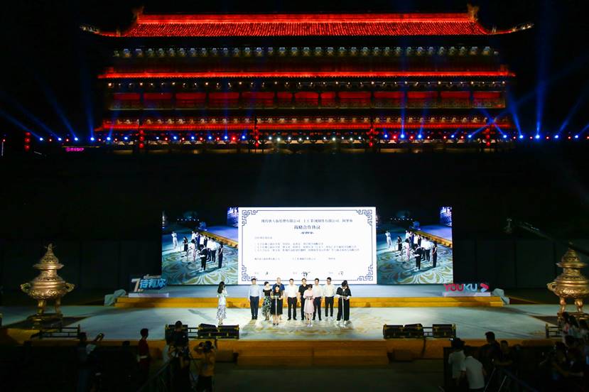 2019年8月18日晚,西安市曲江新區(qū)大唐不夜城步行街運營管理機構現(xiàn)代唐人街管理有限公司,阿里影業(yè)旗下IP交易及創(chuàng)新平臺、《長安十二時辰》授權獨家代理阿里魚,以及《長安十二時辰》出品方之一仨仁影視制作有限公司,于西安市碑林區(qū)南大街永寧門甕城舉行戰(zhàn)略合作簽約儀式。