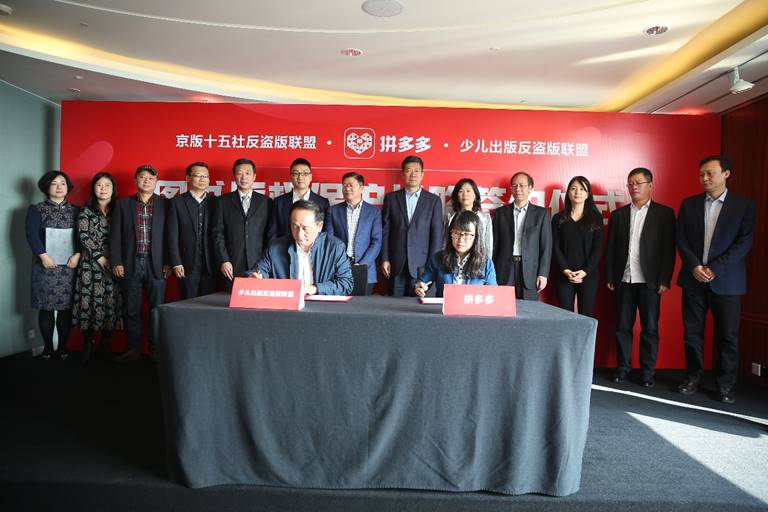 2018年11月,拼多多與國內(nèi)兩大反盜版聯(lián)盟——京版十五社反盜版聯(lián)盟、少兒出版反盜版聯(lián)盟簽約合作,為兩大反盜版聯(lián)盟的72家成員單位建立版權(quán)保護(hù)綠色通道,共同打擊侵權(quán)盜版圖書。