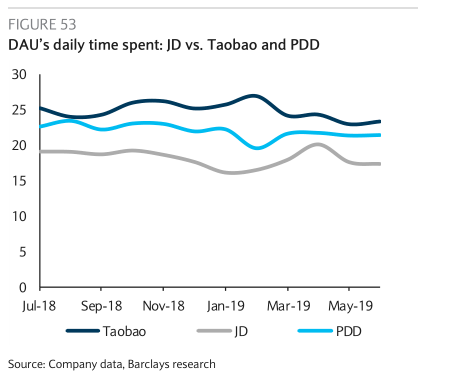 第三,拼多多贊助的電視節(jié)目有助于提升其品牌形象。這些電視節(jié)目在中國擁有大量觀眾,在年輕且受過良好教育的觀眾中實現(xiàn)了相當深的滲透,而他們也是拼多多的目標用戶。據(jù)巴克萊銀行調(diào)查,拼多多自2017年以來贊助了約20個電視直播節(jié)目,在過去兩年中超過了所有廣告商。