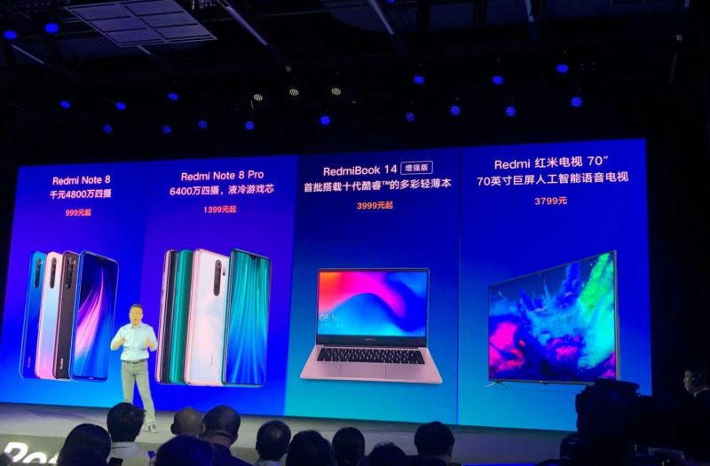 速途網8月29日消息(報道:喬志斌)今日,小米集團旗下品牌Redmi在北京召開新品發布會,小米集團副總裁、Redmi品牌總經理盧偉冰正式發布Redmi兩款手機新品Redmi Note 8和Note 8 Pro。一同發布的還有Redmi首款電視產品——Redmi紅米電視70英寸和全新升級第十代酷睿處理器的RedmiBook 14增強版共計四款新品。