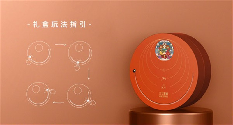 在“中秋甜蜜之禮”禮盒中,三七互娛將北京非物質文化遺產的“兔兒爺”嵌在盒上,來回滑動盒蓋上的旋轉珠即可切換圖案,收到不同形象“兔兒爺”送上的中秋祝福。