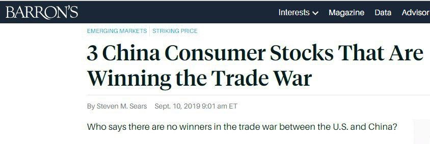 《巴倫周刊》引援雪松街創(chuàng)始人(Cedar Street AssetManagement founder)喬納森-布羅德斯基的觀點表示:“中國優(yōu)先”的企業(yè),可以免疫“特朗普推特”的影響,在因貿(mào)易戰(zhàn)變化的市場環(huán)境中獲益。他認(rèn)為中概股的反彈反映了中美貿(mào)易談判的內(nèi)在影響以及中國經(jīng)濟(jì)刺激政策的運用。