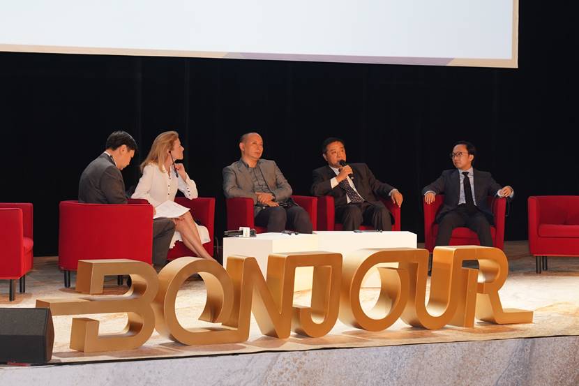 在簽約儀式的同時,法國前總理拉法蘭、巴黎市副市長Frédéric Hocquard、阿里巴巴集團CMO董本洪、巴黎時裝周主席Pascal Morand、嬌蘭全球總裁Laurent Boillot、阿里巴巴集團副總裁高紅冰、Bonjour Brand創始人楊晶、BFM法國第一財經頻道主播Ulysse Gosset、巴黎Mellerio 珠寶總經理Geraldine de Vulpian、阿里魚市場總經理傅小然、以及20位中國品牌方代表還圍繞“讓想法流動起來——年輕、潮流、數據”展開了交流和討論,暢談在全球化消費時代的中法品牌合作共創前景。