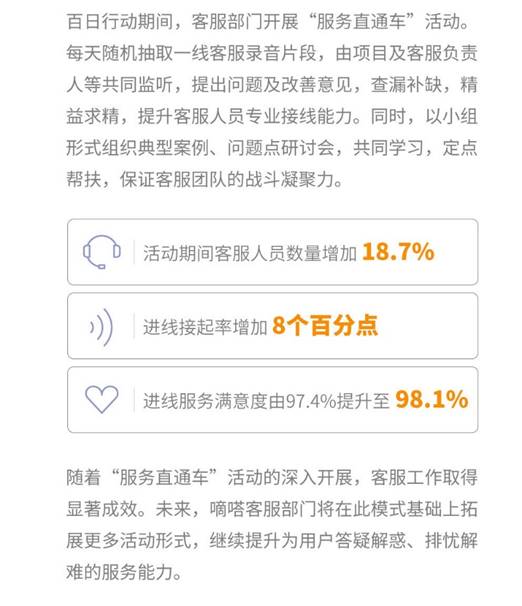 此外,在「百日安全行動」期間,嘀嗒出行從產品安全功能迭代與全方位安全知識宣導兩個路徑完善平臺安全保障機制,強化用戶安全體驗,引導用戶提升安全出行意識,與用戶共同維護出行安全。