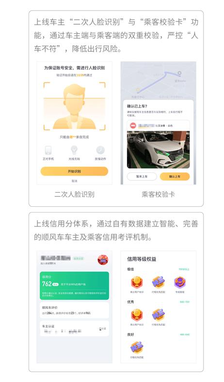 人車不符是順風車搭乘常會遇到的問題之一,為有效控制這一現象的發生,嘀嗒順風車上線車主“二次人臉識別”與“乘客校驗卡”功能,通過車主端與乘客端的雙重校驗,嚴控“人車不符”行為,降低順風車用戶的出行風險。