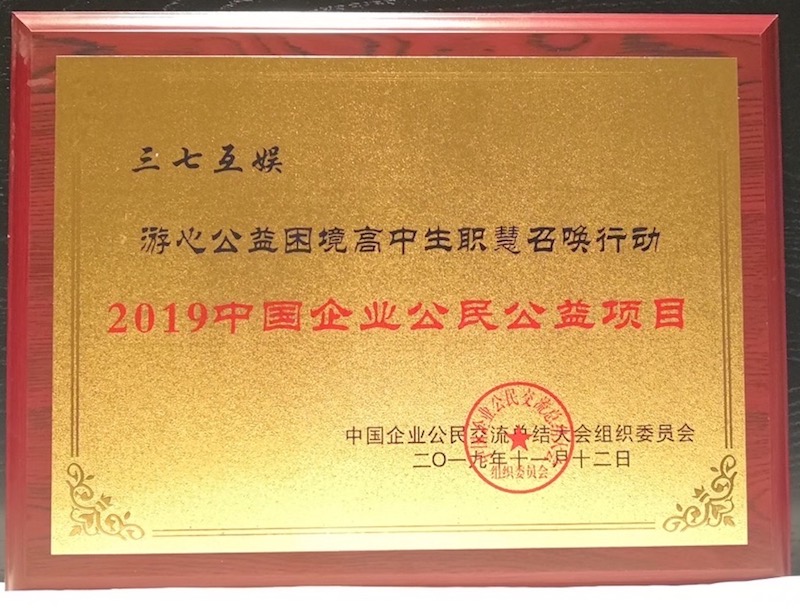 11月12日,2019第十五屆中國企業(yè)公民交流總結(jié)大會在北京召開,三七互娛繼“中國企業(yè)公民責(zé)任品牌60強”、“中國優(yōu)秀企業(yè)公民”、“企業(yè)公民優(yōu)秀公益項目”三個榮譽稱號后,憑借著歷來深耕社會責(zé)任工作、優(yōu)秀突出的表現(xiàn)獲 “三星級企業(yè)公民”榮譽稱號,困境高中生職慧召喚行動獲得“2019中國企業(yè)公民公益項目”。