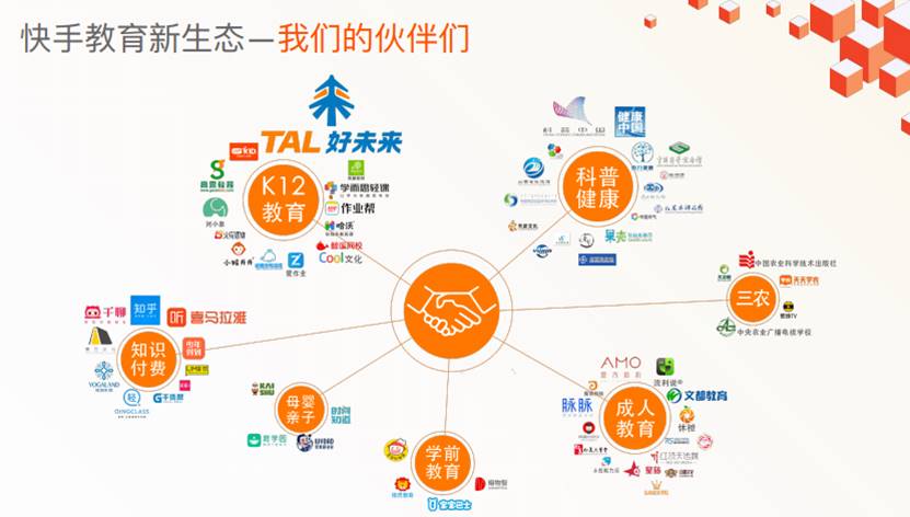 隨著生態的擴張,快手意識到需要引入更專業、更有體系化的知識,進而開始推行“快手教育生態合伙人”計劃,并且逐步與B端教育企業接觸和合作。目前,好未來、學而思、高思教育、文都教育、知乎、喜馬拉雅等多家企業均是快手教育生的合作伙伴。