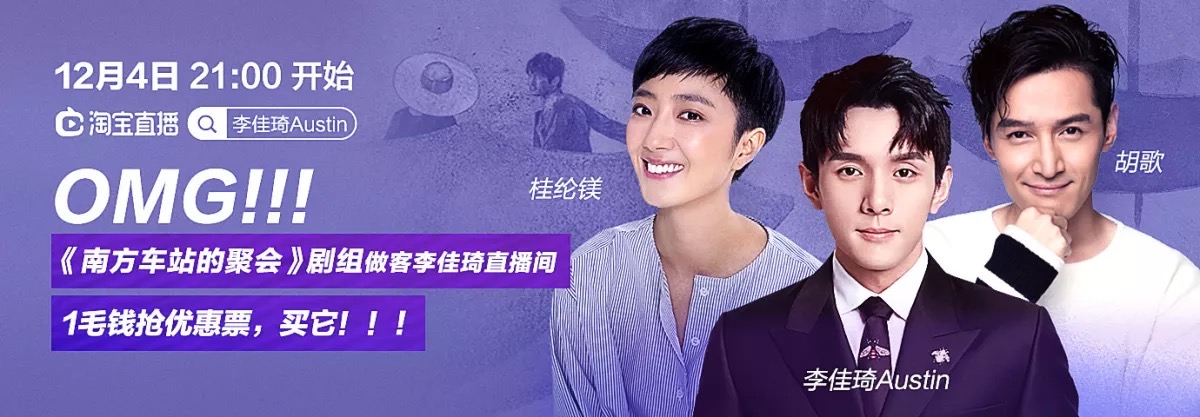 速途網12月4日消息(報道:李楠)今晚9點,電影《南方車站的聚會》主演胡歌、桂綸鎂來到了“口紅一哥”李佳琦的淘寶直播間,通過燈塔×淘寶直播共同搭建的“沖擊播”線上路演,現場與粉絲交流互動。