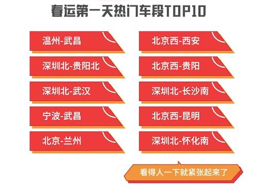 從開售三小時的情況看,在第一天就迅速進入春運狀態的是深圳北和北京西兩個車站,預訂1月10日出發前往全國各地的火車票數量最多。
