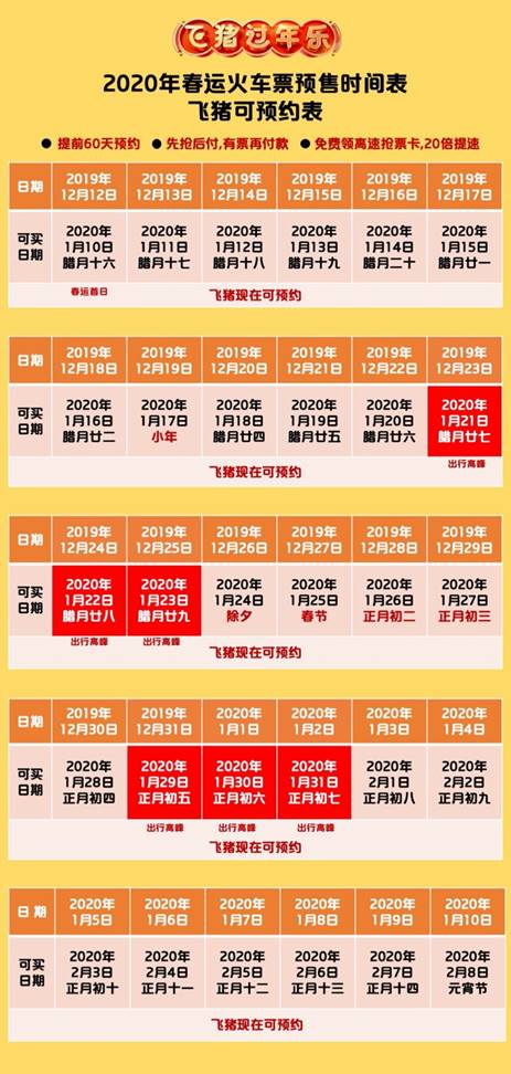 各大旅游平臺紛紛推出了春運搶票攻略,飛豬可提前60天預約,除了有免費加速搶票包,還可以先搶后付,有票再付款,助力全國人民簡單買票,安心回家。