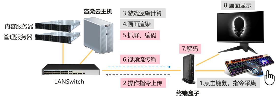 時延是影響云游戲體驗質量和成功與否的關鍵因素。相比本地游戲,云游戲額外增加了云端抓屏和編碼、網絡傳輸、終端解碼等流化處理時延。
