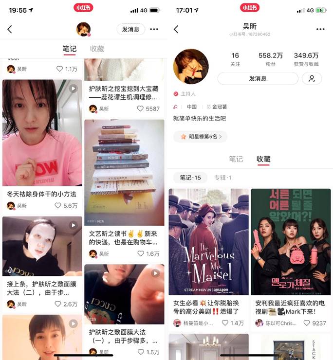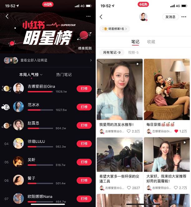 2017年底,小紅書開始邀請明星入駐,林允、范冰冰作為首批入駐的明星,目前在小紅書的粉絲均已超過1000萬,其中林允更是通過真實的分享穿搭筆記、美妝用品、甚至染發失敗的素顏照等成功獲得千萬粉絲,被稱為“最接地氣的耿直girl”。