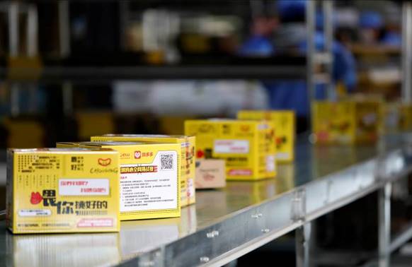 “現(xiàn)在每天隨時(shí)發(fā)貨,量夠了就裝車,這樣的廂式貨車一天要來好幾批”,真心食品電商總監(jiān)張輝指著眼前兩輛正在整齊碼放快遞的車說到,“現(xiàn)在剛好是拼多多的年貨節(jié),發(fā)貨量比雙11還要大”。