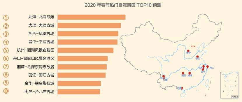 現如今,在家過年不再是唯一選擇,全家出游有望成為今年春節的新風尚。根據高德地圖交通大數據,預計全國自駕前十熱門景區中,大部份為南方景區,其中北海市的北海銀灘排名第一。從景區類別看,古城類景區最受游客喜愛,大理古城、鳳凰古城、平遙古城、麗江古城、臺兒莊古城等紛紛上榜前十。