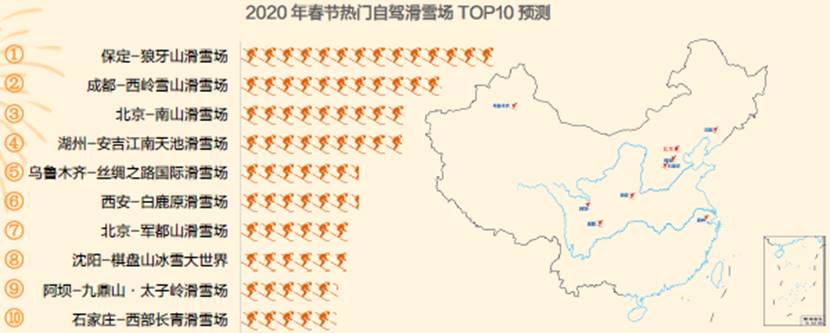 滑雪場方面,預計2020年春節全國自駕熱門滑雪場主要在保定的狼牙山滑雪場,成都的西嶺雪山滑雪場、北京的南山滑雪場等地;溫泉度假方面,保定的大午溫泉城、貴陽的息烽溫泉、紅河哈尼族彝族自治州的湖泉半山溫泉頗受游客歡迎。