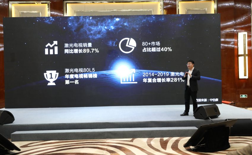 激光電視是近年電視市場的最大亮點,2019年,海信激光電視的銷量同比增長89.7%,80吋及以上市場占比超過40%,產品80L5牢牢占據了年榜第一。