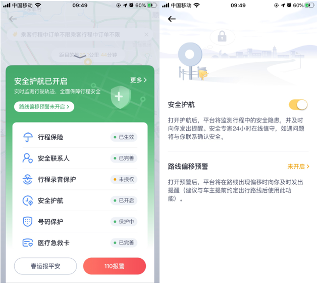 嘀嗒出行相關負責人表示,路線偏移預警功能有助于進一步提升乘客的自我保護意識,尤其是在跨城長途出行過程中,乘客容易疲憊,此時路線偏移預警的強提醒機制,有助于讓乘客第一時間獲知路線的行進情況并做出有效應對。