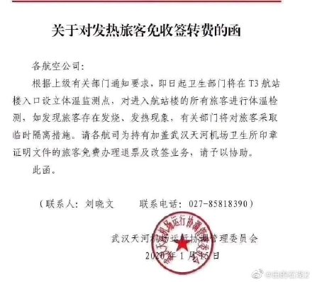 為此,武漢天河機場運行協調管理委員會向各航空公司發函,請各航司為持有加蓋武漢天河機場衛生所印章證明文件的旅客免費辦理退票與改簽業務。