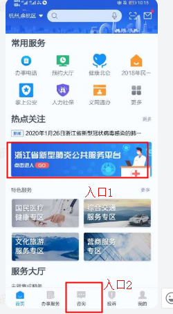 “浙里辦”是浙江省的移動政務服務平臺,注冊用戶超過3000萬。用戶從APP首頁進入平臺,就可以在“主動申報與疫情線索提供”、“ 浙江省互聯網醫院新型肺炎通道”、“網上智能問診與人工服務”等模塊中選擇相應服務。