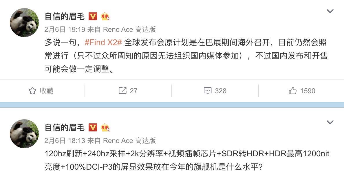 速途網(wǎng)訊 昨日,OPPO副總裁沈義人(微博:自信的眉毛)表示,OPPO Find X2全球發(fā)布會(huì)原計(jì)劃是在巴展期間舉辦,目前仍然會(huì)照常進(jìn)行。只不過(guò)國(guó)內(nèi)媒體無(wú)法組織參加,國(guó)內(nèi)的發(fā)布和開(kāi)售工作可能也會(huì)做一定調(diào)整。