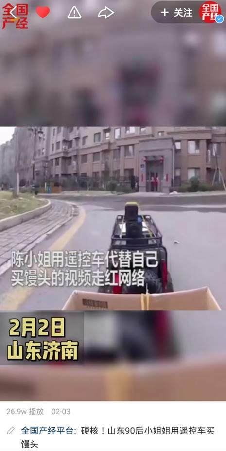 近期,在全國人民萬眾一心、共抗疫情之時,快手平臺上一系列“高能買菜方式”刷爆了社交媒體,例如濟南90后小姐姐將遙控車改裝上攝像頭和語音裝置出門買菜、臨沂火鍋店老板無人機“空投”食材、浙江隔離點機器人送餐……可謂是“方法千萬條,吃飯第一條”,引爆了新的買菜時尚。