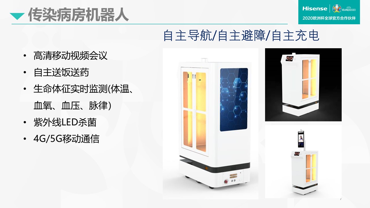 陳永健還表示,海信正在開發(fā)傳染病房多醫(yī)院遠(yuǎn)程會診3.0版本,也就是運用機(jī)器人技術(shù),比如移動視頻會議、送藥送飯、消毒、患者生命體征實時監(jiān)測等,很多基本工作都是機(jī)器人操作,進(jìn)一步減少了醫(yī)生與患者接觸的次數(shù),緩解醫(yī)護(hù)人員人手不足的情況,也降低交叉感染的風(fēng)險。