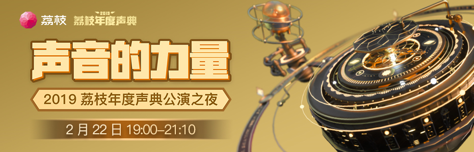 2019荔枝年度聲音盛典籌備已久,在國家疫情防控工作日趨關鍵的情況下,荔枝旋即對頒獎晚會形式作出改變:依托自身強大的聲音互動技術,將活動轉場至線上,并將晚會主題定為“聲音的力量”——盡顯“用聲音在一起”的力量與溫暖。