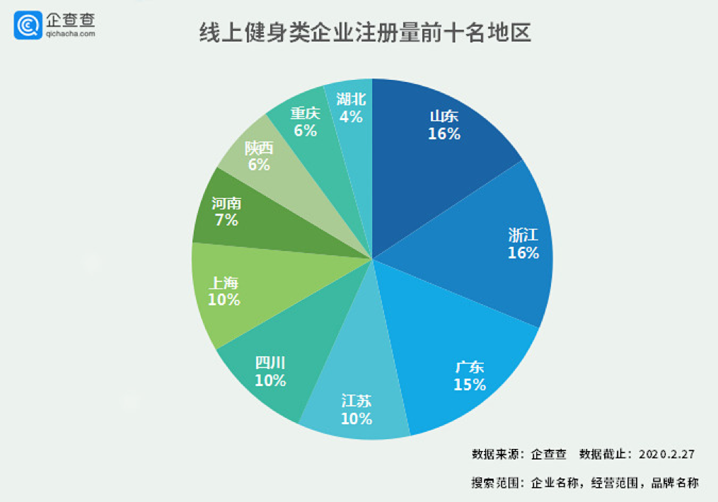 根據(jù)企查查數(shù)據(jù)顯示,放眼線上以及線下的健身領(lǐng)域,綜合來看企業(yè)注冊前三名非浙江省、廣東省以及山東省莫屬。