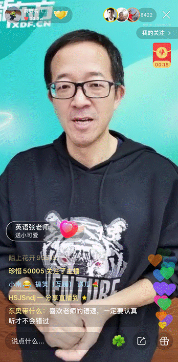 在直播過程中,俞敏洪不斷收到老鐵們的留言提問,并一一耐心解答。“如果大學四年,你沒有學會獨立思考和精神自由,你的一生都可能成為生活和物質的奴隸。”金句頻出的俞敏洪,牢牢圈住了老鐵們的心。輕松、愉悅的直播間氣氛和留言區充滿正能量的鼓勵,也讓全程站立演講的俞敏洪老師逐漸松弛下來。雖然是第一次直播,俞敏洪大膽地嘗試了紅包雨、穿云箭等產品功能,和老鐵們打成一片。在快手頗具特色的直播PK環節,俞敏洪更是在直播間連線多位老鐵,把氣氛推向最高潮。在與用戶“橘子外語”連線時,俞敏洪得知這位老師在快手上免費教英語發音課程,幫助農村學生接受專業知識。俞敏洪對其行為大加贊賞:“互聯網時代最好的特點,就是讓教育更便捷,這種分享大多是免費分享,我覺得特別棒。”